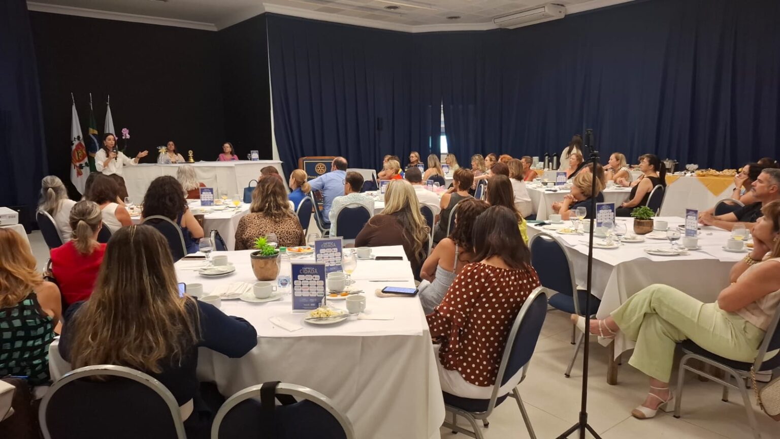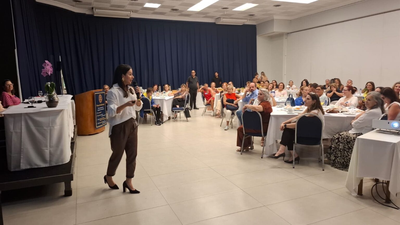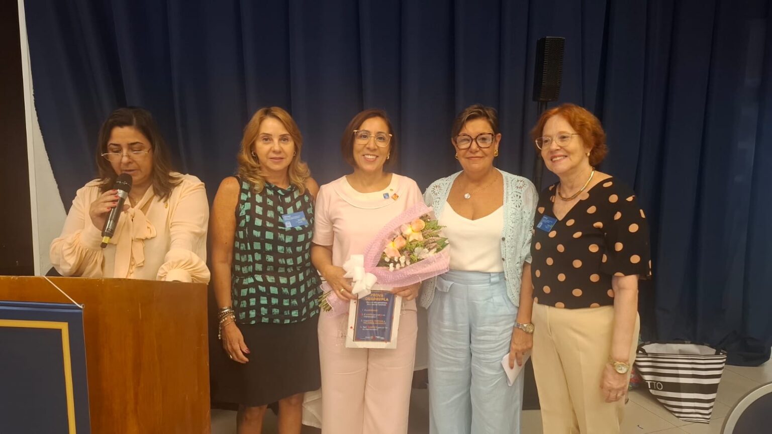 A Companheira Isabela de Castro, Presidente Fundadora do Rotary Club de Santos Boqueirão e Presidente da Comissão de Diversidade, Equidade e Inclusão 2025-26, que coordena o Projeto Posso – Educação de Gênero, sugeriu uma reflexão: onde a mulher está no mundo de hoje e o papel de todas, do Rotary Boqueirão nessa luta por respeito e direitos iguais. Para ela, um dos fundamentos básicos está na orientação dos jovens, visando uma sociedade mais harmônica e sem violência contra a mulher.