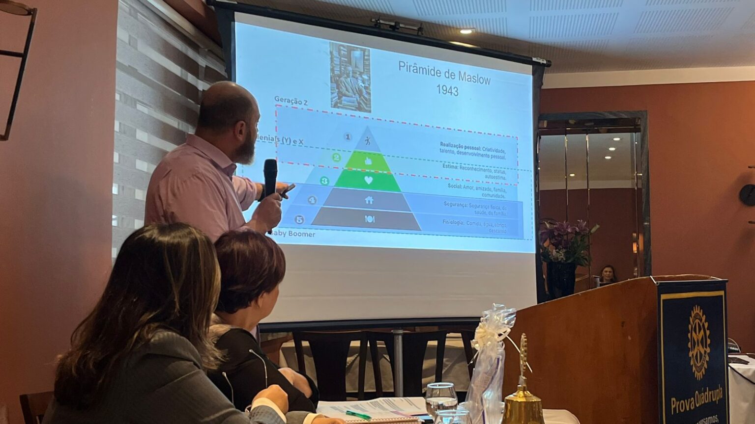 Ele citou o Rotary como exemplo, valorizando o reconhecimento e a celebração de conquistas.