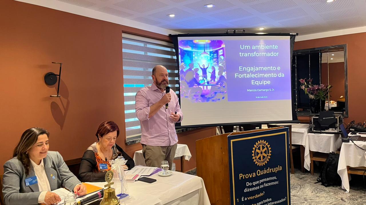 Na reunião desta quinta-feira, 02, o convidado foi Marcos Camargo Santos Junior, Gestor de Projetos e Suprimentos e Mestre em Psicologia, com o tema: “Um ambiente transformador – Engajamento e fortalecimento da equipe”.