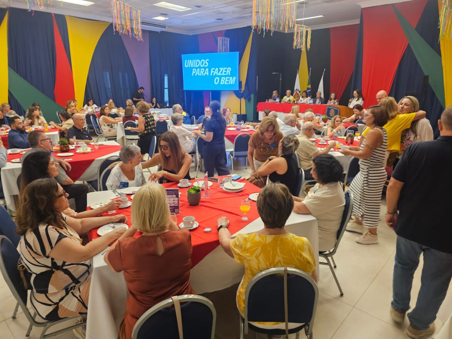 A 30ª Reunião Ordinária do Rotary Club Santos Boqueirão foi marcada por grande participação e apresentações inspiradoras sobre o Rotary. A presidente 2025-26 da ASFAR, Vanessa Alcalai, destacou o orgulho de integrar a Associação de Famílias de Rotarianos de Santos, formada por mulheres voluntárias que protagonizam ações e projetos de impacto nas instituições, reforçando que são uma rede feminina forte, unida pelo propósito de servir com amor.