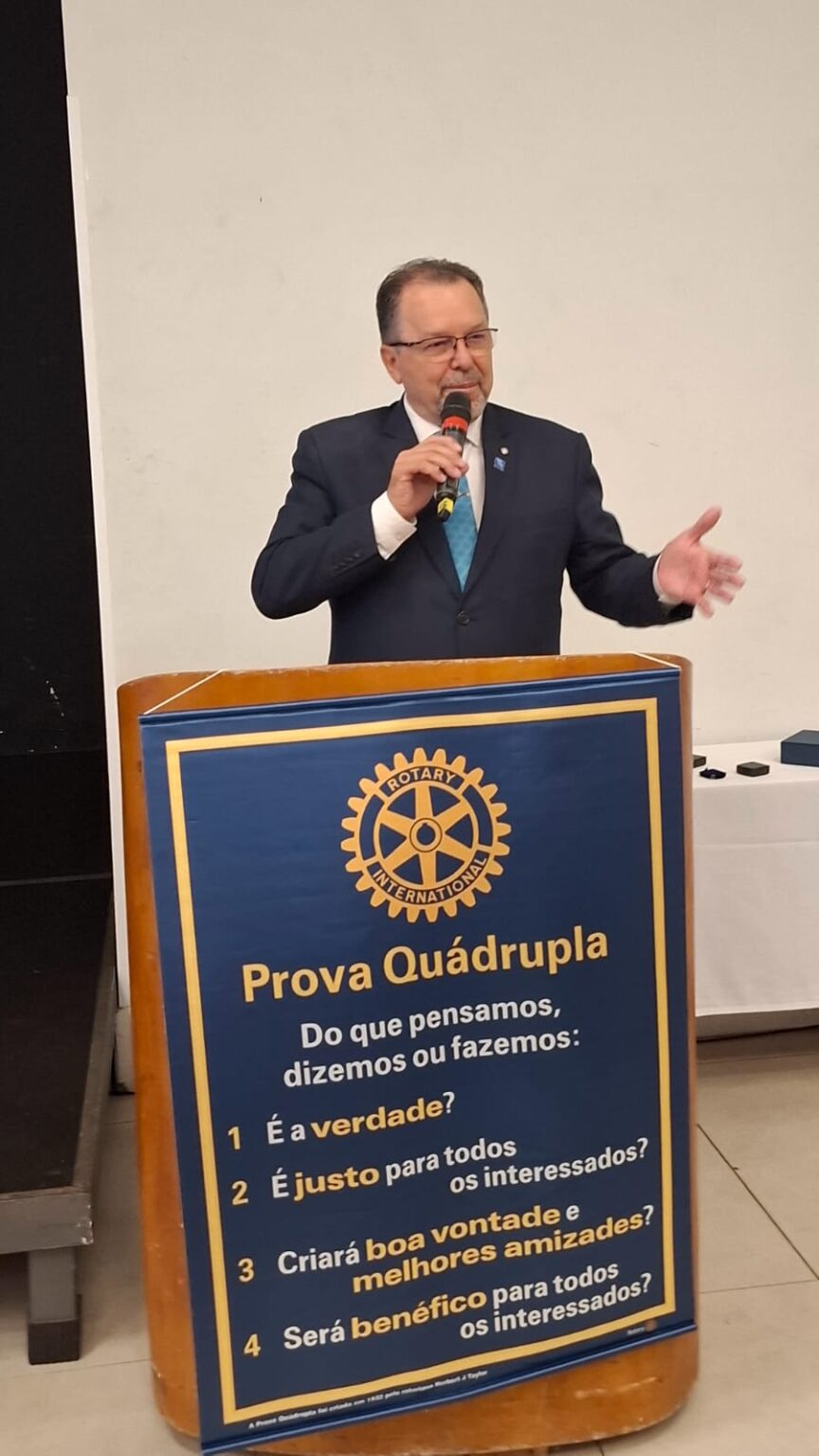 Em sua fala, o Governador destacou o compromisso do Rotary com as comunidades e projetos humanitários e fez um pedido especial a todos rotarianos “Nunca deixem de sonhar”.