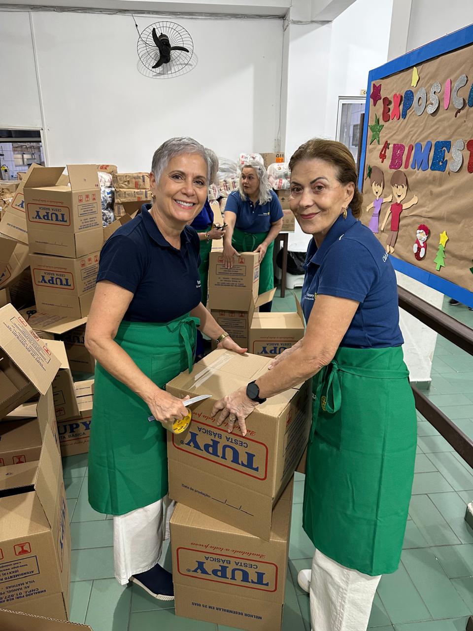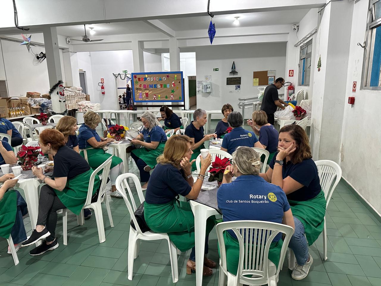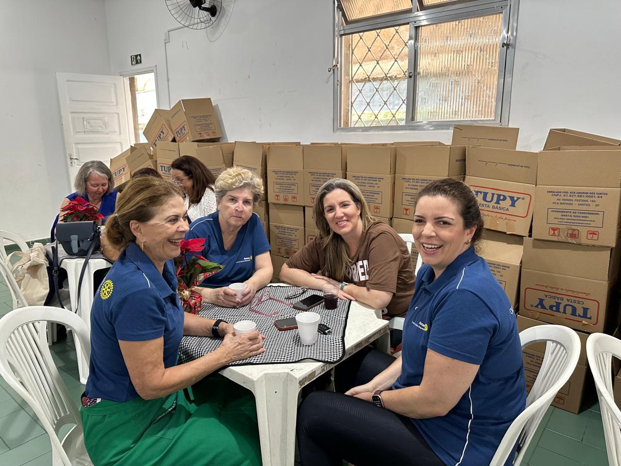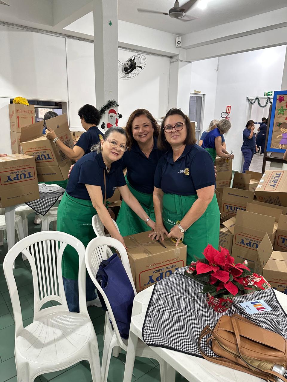 Após um acolhedor café da manhã, nossas Rotarianas dedicaram-se à montagem de 90 “Cestas de Natal” que foram doadas para as famílias das crianças atendidas pela entidade e também, aos colaboradores. O clima natalino tomou conta do salão e com muito amor e solidariedade, as Cestas ganharam forma rapidamente.