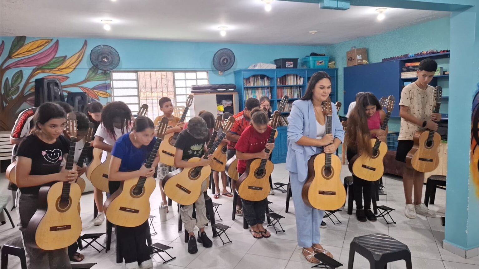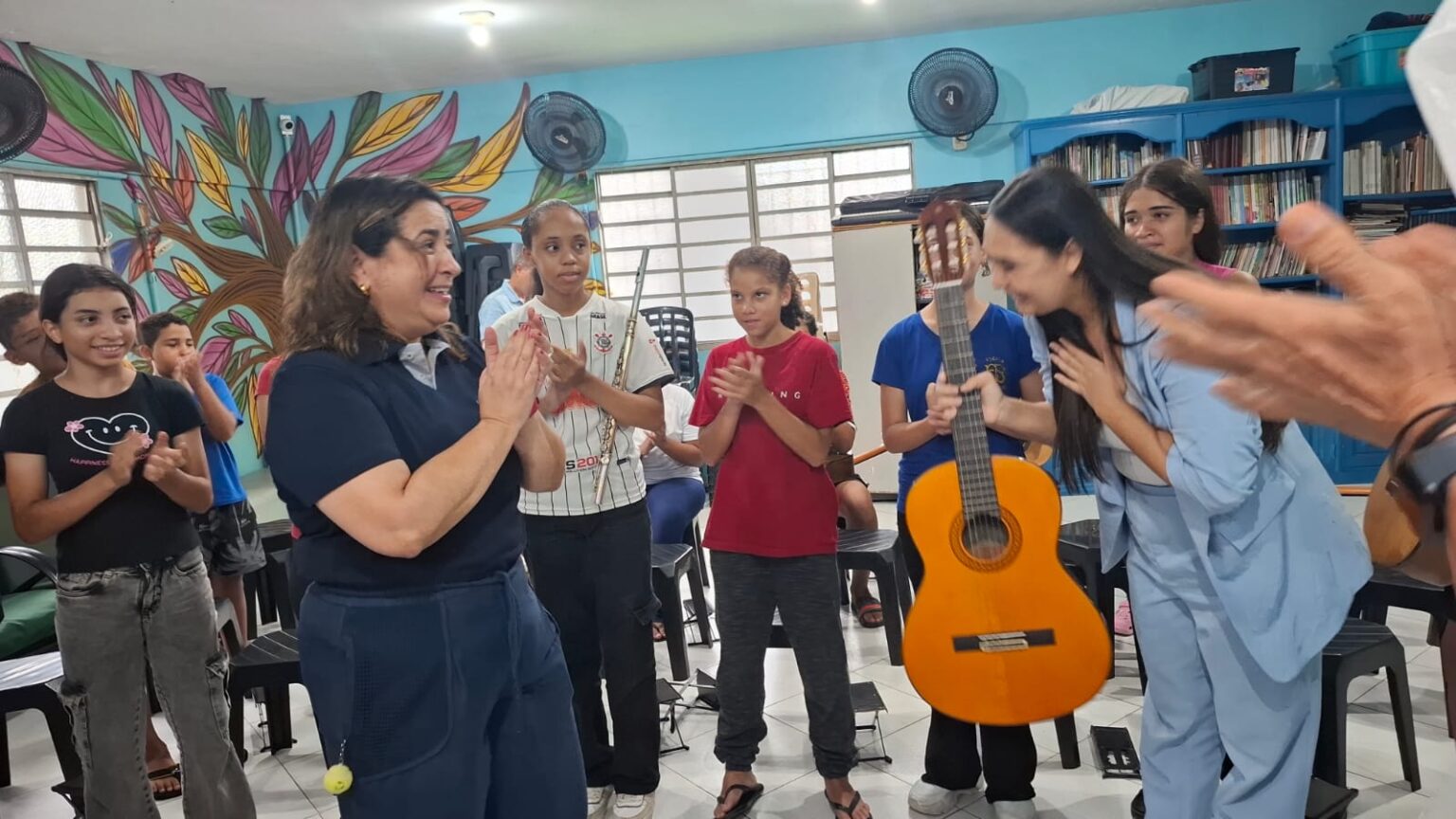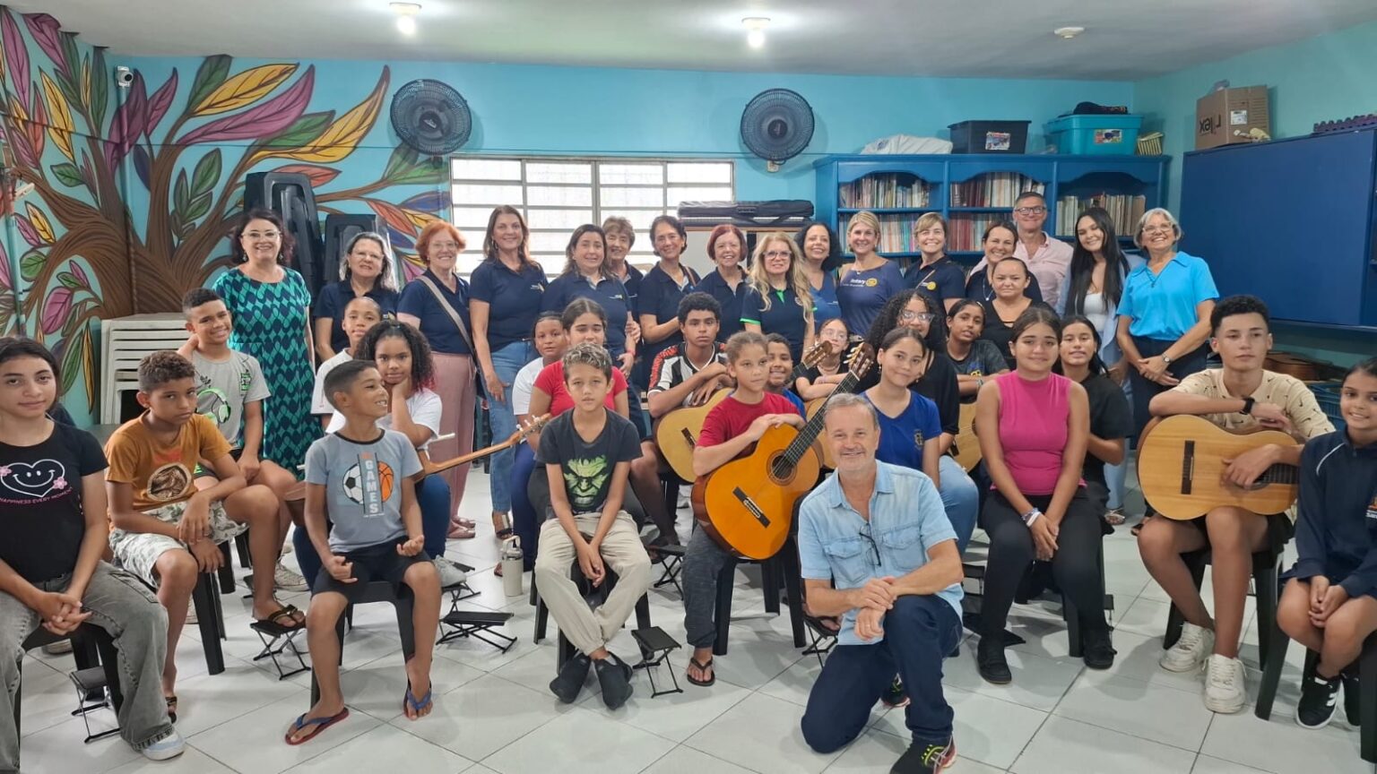Foram entregues 01 Geladeira, 05 Violões Profissionais e 22 suportes para os pés, denominado “ENTRE NOTAS E SONHOS: ONDE MÚSICA E FUTURO SE ENCONTRAM”. Os jovens músicos, que aprenderam muito com o grande Maestro Manzione, agradeceram e fizeram uma linda apresentação, sob a regência da professora Rosa Aguiar e da maestrina Andreza Cardoso. O presidente do GALP Roberto Andreazza, agradeceu por todo apoio recebido.